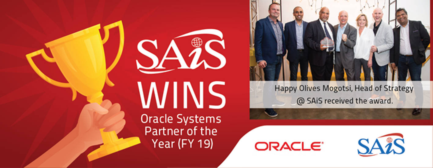 The winner of this Award is a partner who is based outside of South Africa, and who has successfully managed to build a vision within the Public Sector of his home country based around an Oracle architecture. They have become one of our most successful hardware partners across the whole of MEA. In FY18, they managed to grow their hardware business by an incredible 635%, and closed two of our largest deals in SADC last year. Congratulations to our SSO partner of the Year – SAIS Happy Olives Mogotsi, Head of Strategy @ SAiS received the award.